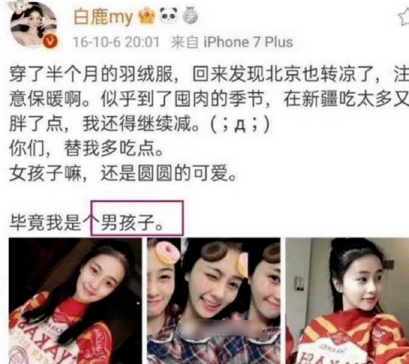 说到白鹿,这两天确实被骂的很厉害,原因也很简单,就是她之前说的一些言论被扒出来了,不论是早年的一些采访,还是近几年综艺和拍戏时候说的话,都一直坚持在说“自己是个男人”,包括早年微博说自己是个男孩子,这两年拍戏说自己也是男主演,上综艺说自己是男嘉宾,白鹿的性格确实大大咧咧的,这种言论也算是开玩笑。只不过,她在这么说的同时,还一直在强调“本人比较排斥娘的东西”。最离谱的是,有一次白鹿介绍自己的CP角色,说一开始是霸总跟小奶狗的故事,后来变成了男霸总和小母狗的故事,怎么听都让人觉得怪怪的。因为白鹿从始至终一直都在强调,自己是个男人,男人,男人,也引起了不少瓜众的吐槽,怀疑她是在重男轻女的环境下长大,一直得不到重视,所以才想做男人的。